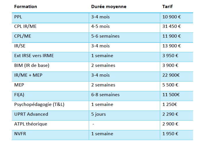 D’autres formations possibles (IRI, CRI, FI-UPRT, PPL, NVFR, RSFI, FE/CRE/IRE/FIE…). Contactez-nous pour plus d’informations.